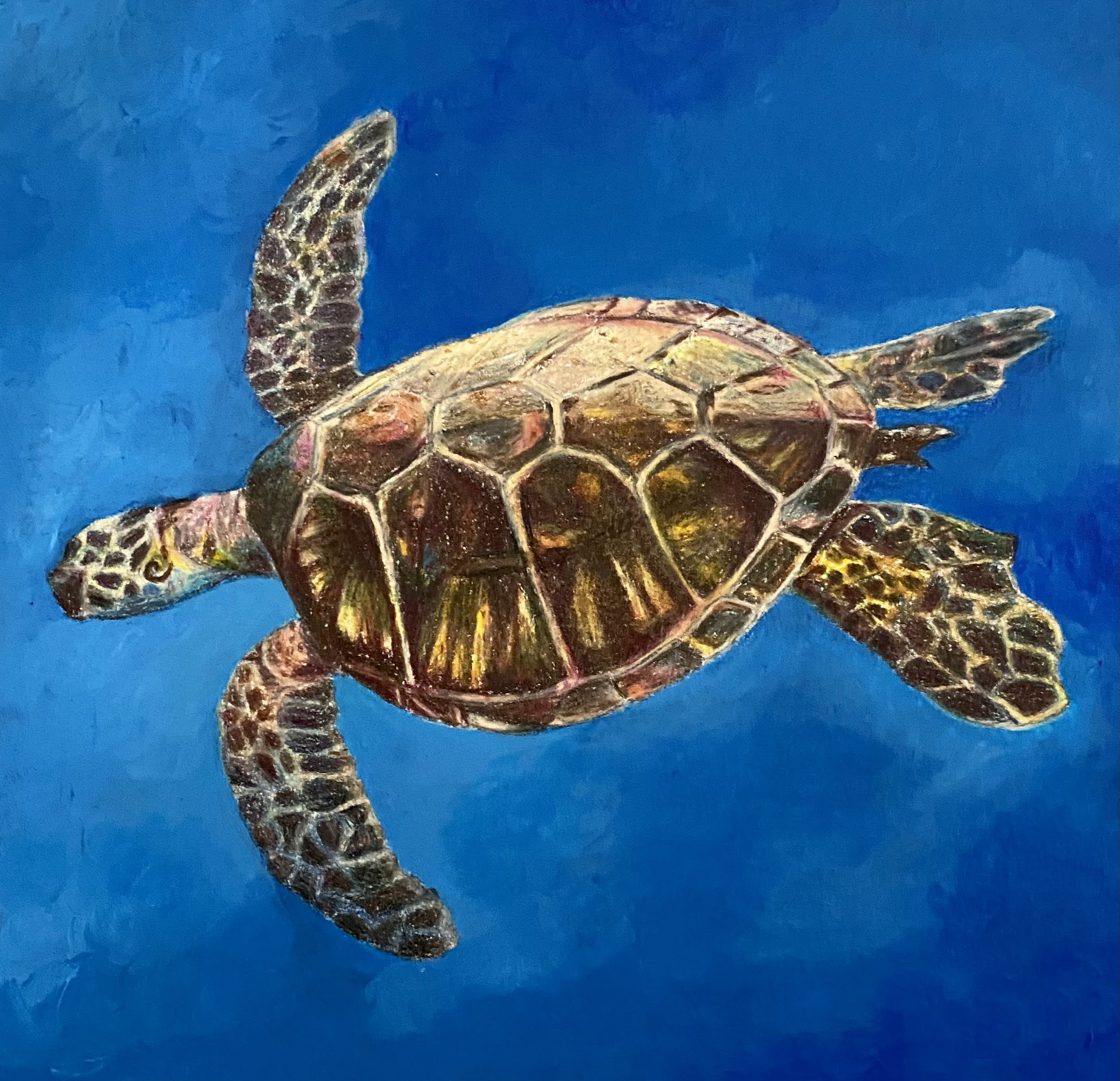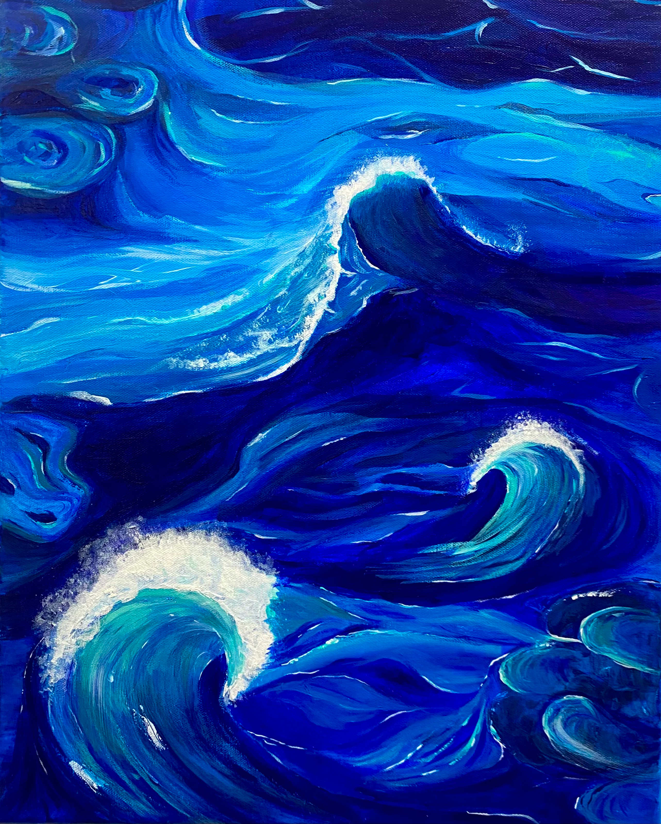 This painting is meant to signify how it feels when I am swept up and washed away in the rolling waves. The Romantic artists painted beautiful and overwhelming landscapes in order to communicate how small we are and how powerful nature is. I hope this painting follows that tradition with a personal extension.