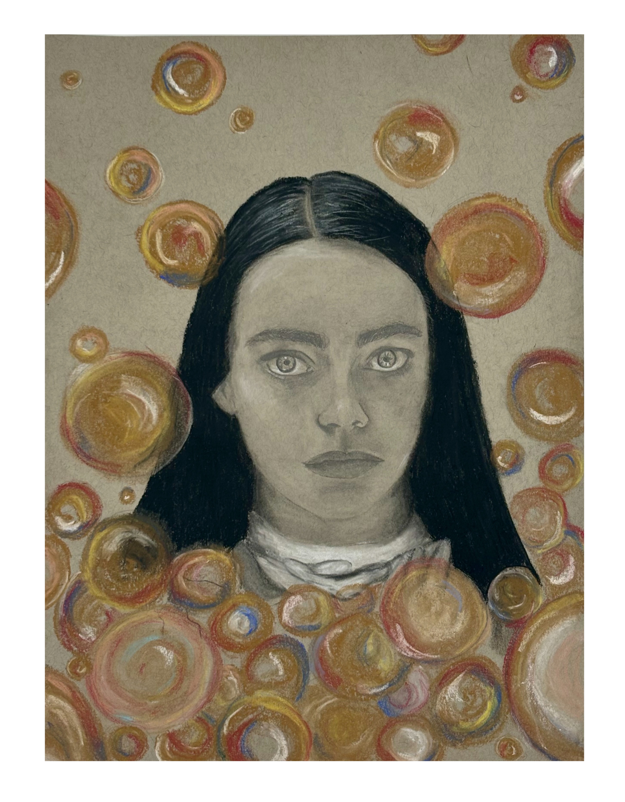 This artwork is my love letter to Poor Things. I was able to experiment with facial structure, blending, and combining a few of my favorite mediums to honor the 2023 film that will be with me forever.