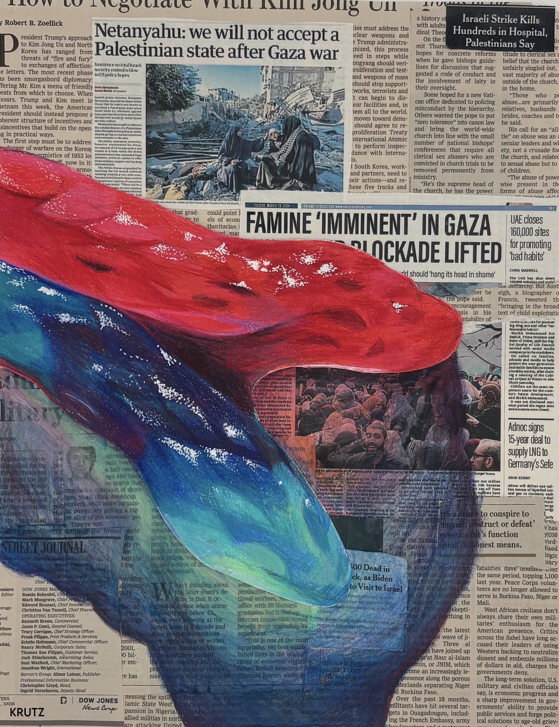 Original 11”x14” mixed-media colored pencil & collage artwork on fine art heavyweight watercolor paper.